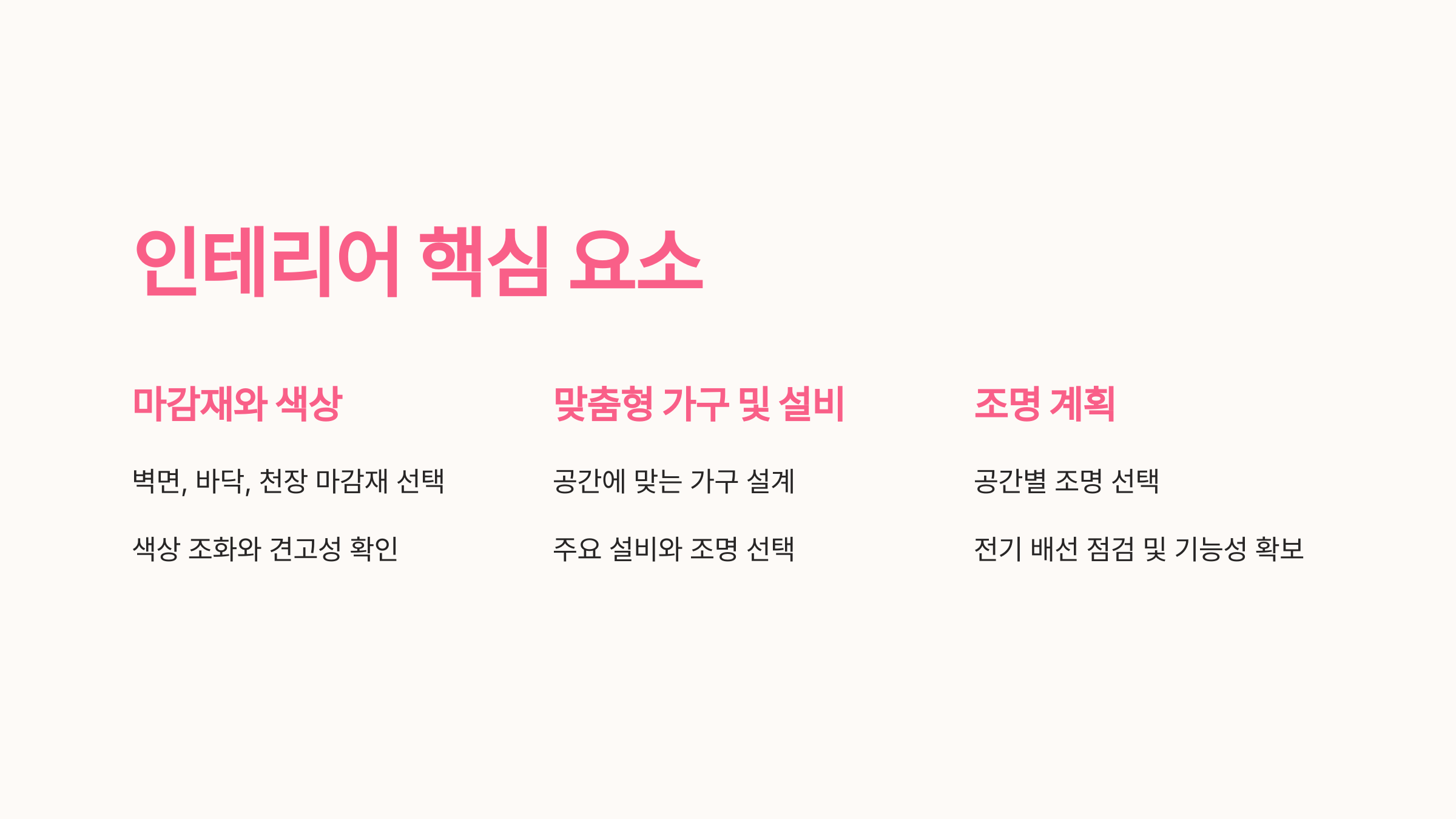 - 주요 요소 정리: 반드시 필요한 가구, 기능, 설비 목록 작성하기