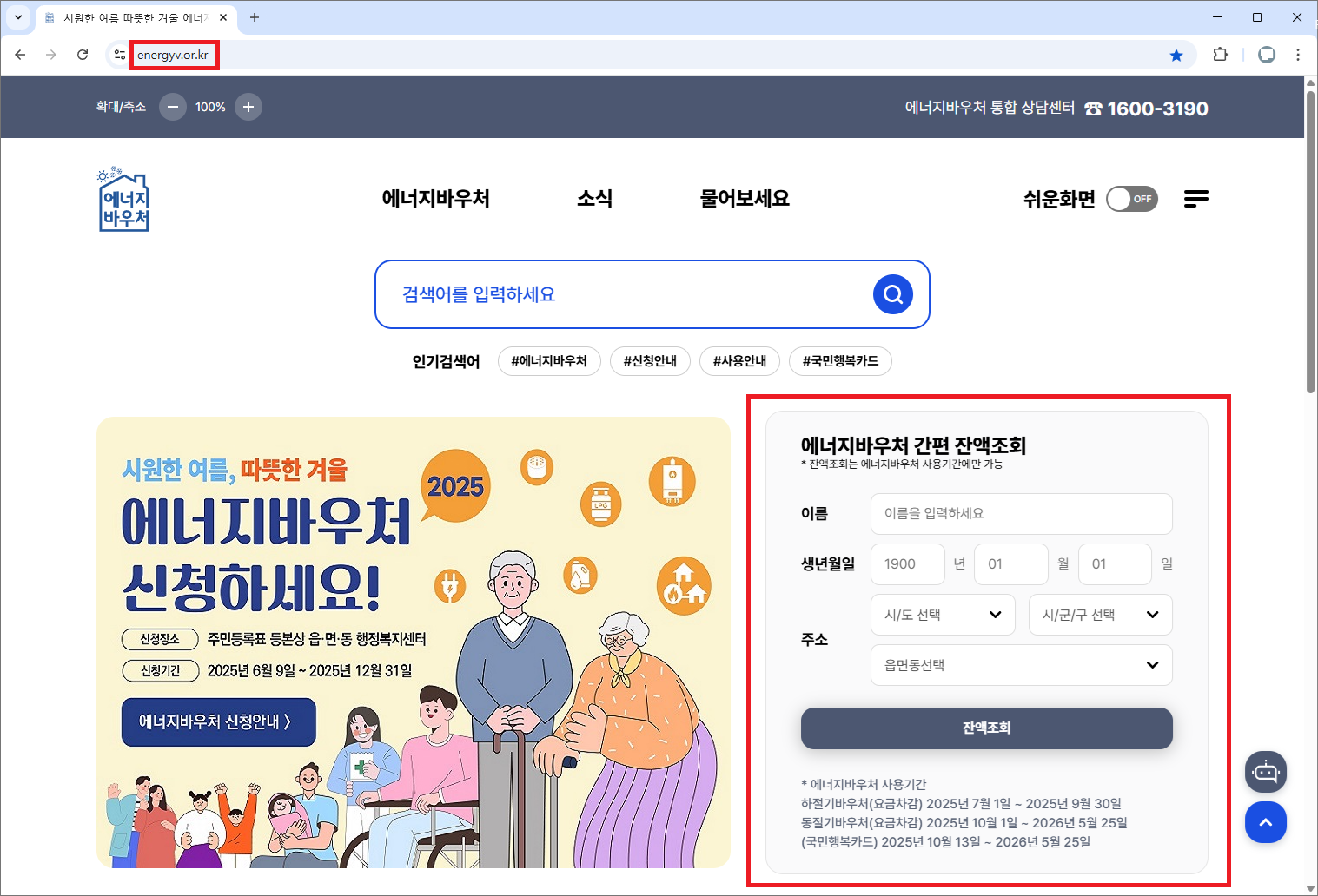 에너지바우처 잔액조회 방법은 다음과 같습니다: