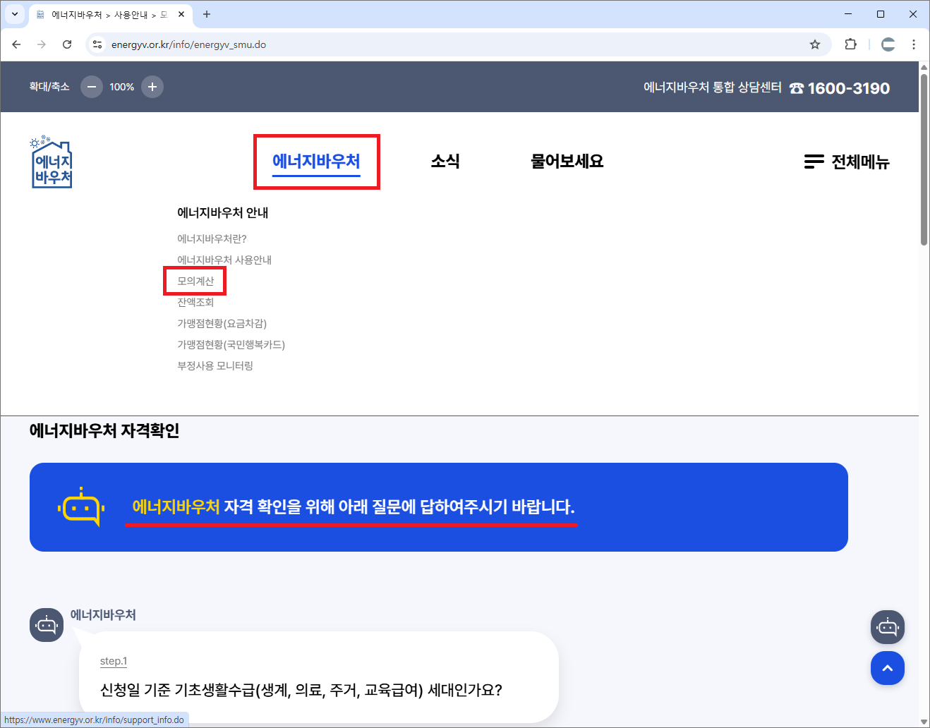 A. ‘복지로(www.bokjiro.go.kr)’ 사이트에서 가능합니다. ‘에너지바우처 모의계산’을 검색하면 바로 찾을 수 있어요.