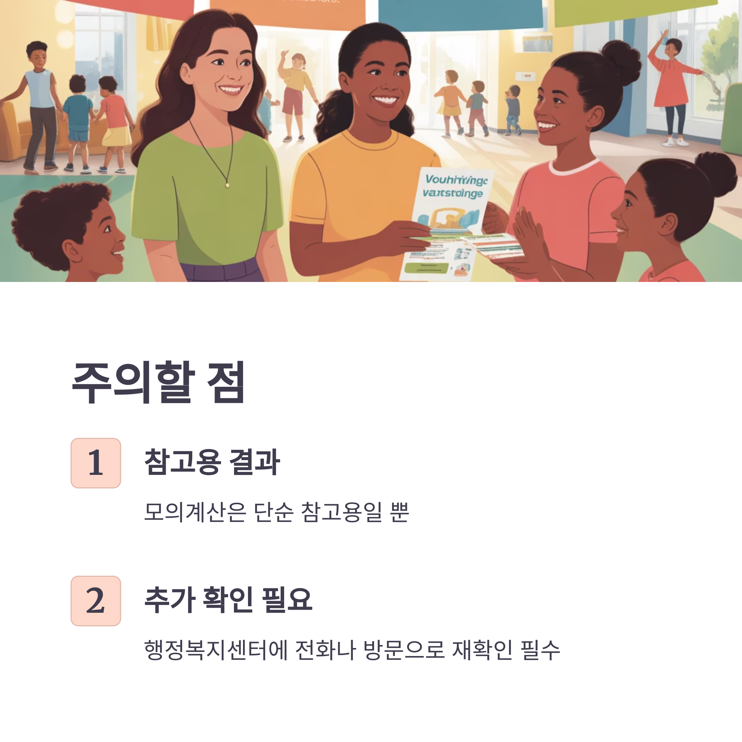 저도 처음엔 이 바우처 제도가 너무 복잡해서 손을 놓고 있었는데요, 막상 모의계산을 해보니 생각보다 간단하고, 나도 대상자가 될 수 있다는 희망이 생기더라고요! 🧡