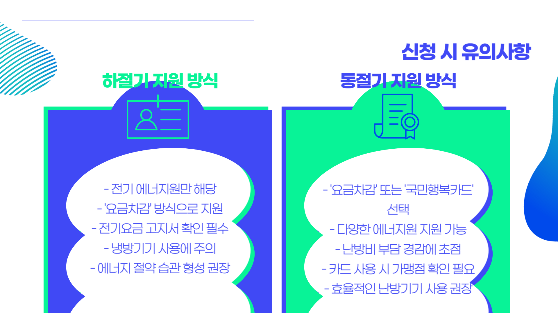 - 동절기·하절기 지원 방식 차이 미리 파악