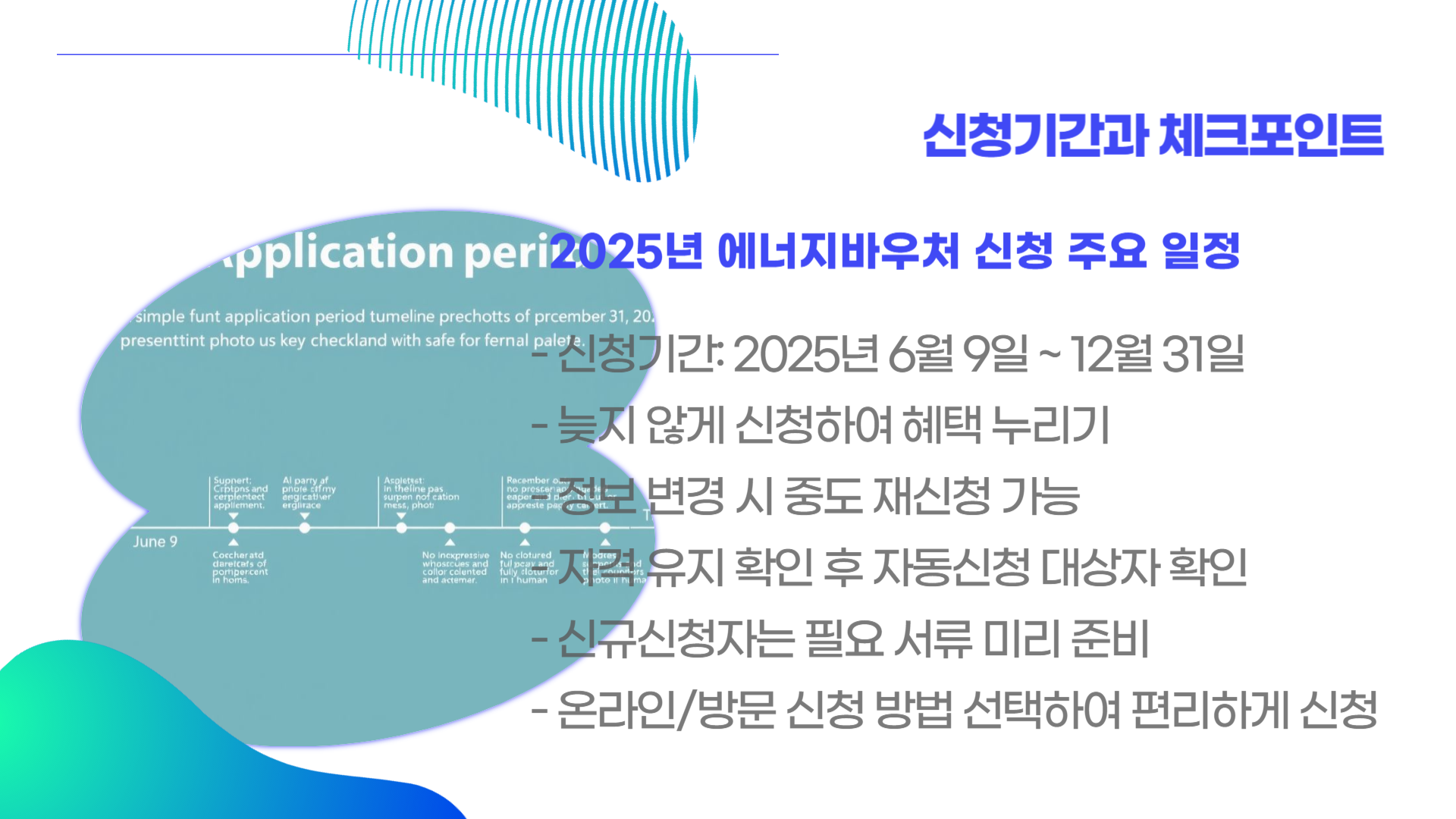 에너지바우처 지원 신청은 2025년 6월 9일부터 12월 31일까지예요.