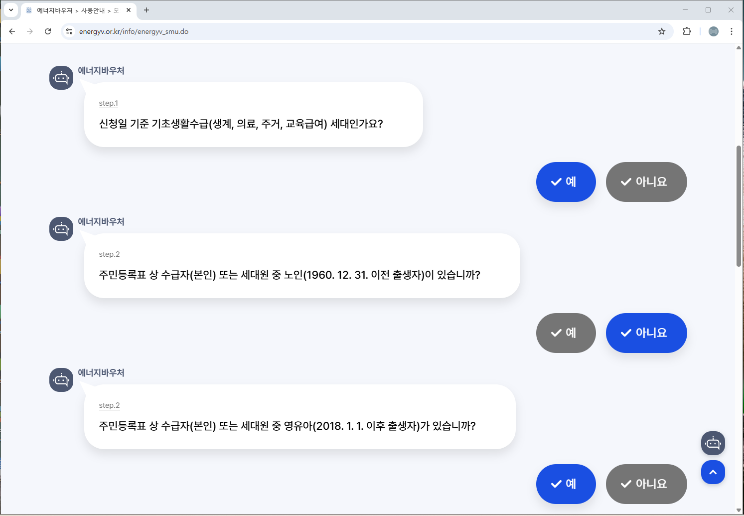 이러한 질문들은 실제 에너지바우처 자격을 판단하는 데 핵심이 되는 요소들이에요.